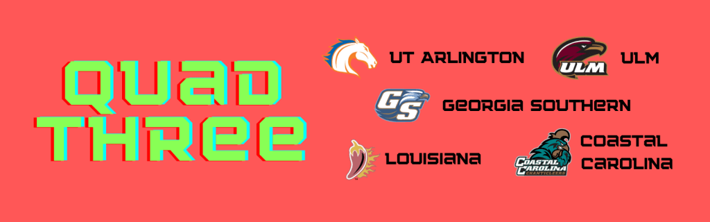 I was tempted to place the Eagles in Quad 4, but Georgia Southern has demonstrated an ability to generate heat – once winning three straight against ULM, Louisiana and South Bama. They also won their season finale (over ULM again), which means they arrive to Pensacola with a bit of moxie packed with the luggage.