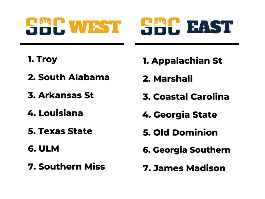 Meanwhile, the common wisdom in the Sun Belt West was the Louisiana was still the team to beat despite all of its talent and staff losses. South Alabama was a contender, and the mood was positive on Troy, even under a new coach in Jon Sumrall. Nothing was expected from Southern Miss, believed to be rebuilding under new head coach Will Hall. Texas State, Arkansas State, and ULM were all years from competing.