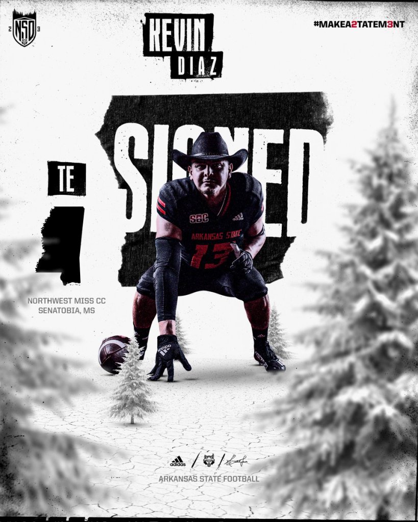 | Kevin Diaz | Jr. | TE | 6-4 | 259 | NA | NW MS CC |