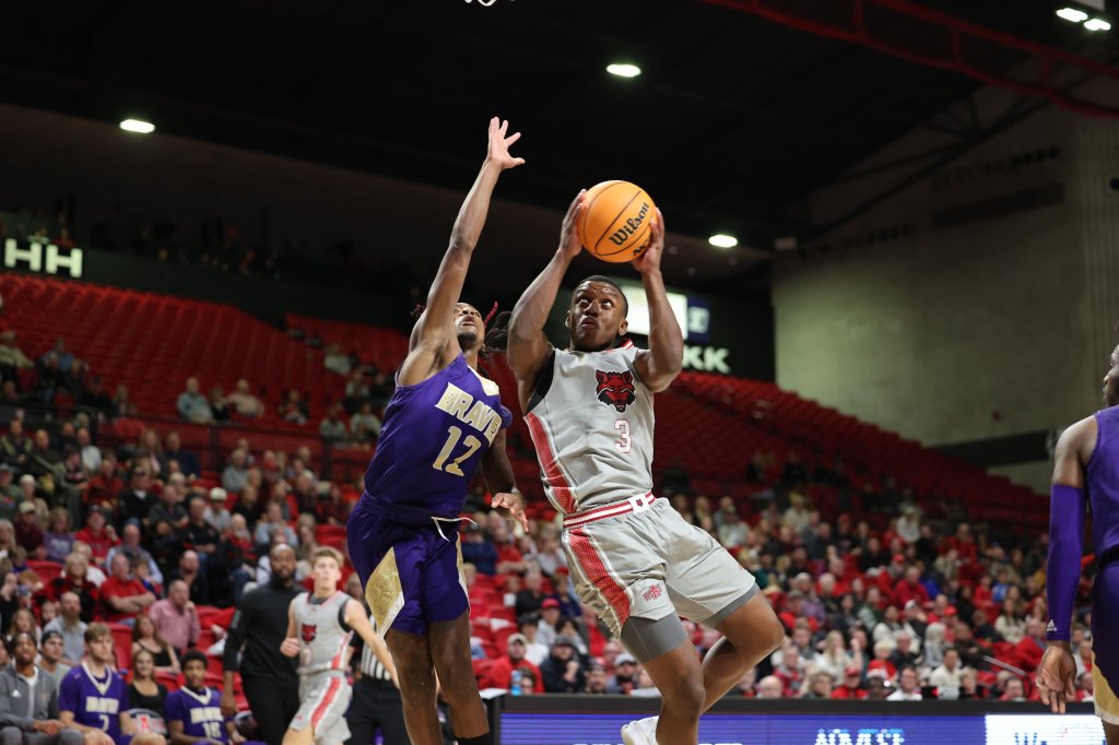 Midway through the second half, the Red Wolves lead was up past twenty. At the five minute mark, the Red Wolves were kinda just goofing around, allowing Alcorn State to reduce the deficit to sub-20 while the Mayor of Bono (Avery Felts) and the Prince of Paragould (Butler) attempted out-three each other. Both would finish the game with four three-ball apiece. It was fun.