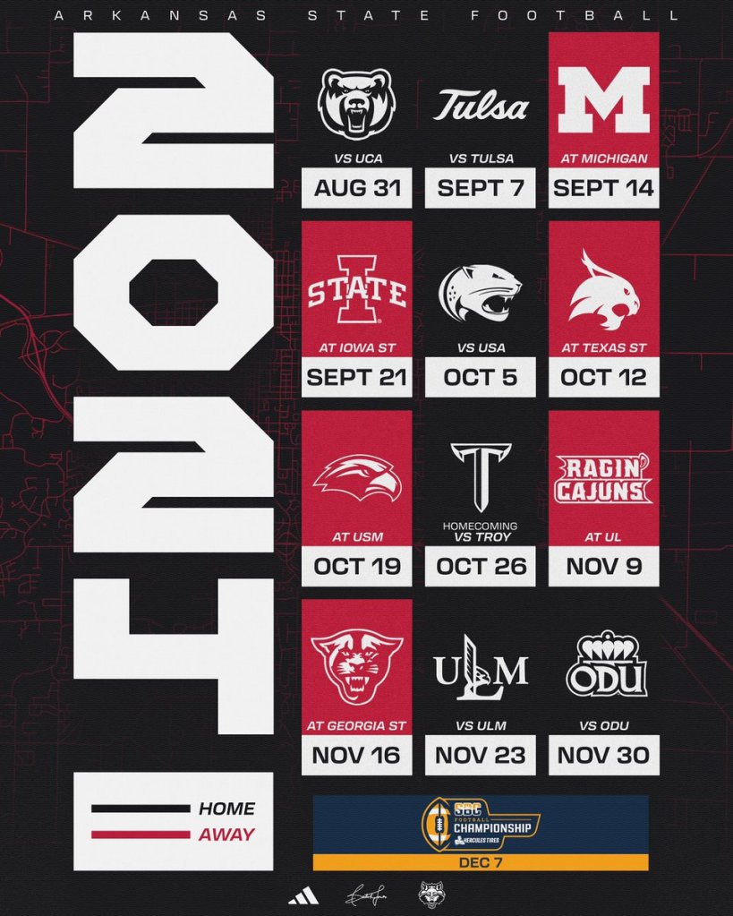 Red Wolves open the season with two games at home, and they close the season with two games at home. In between is an even set of back-and-forth’s so symetrical it almost seems generated by ChatGPT.