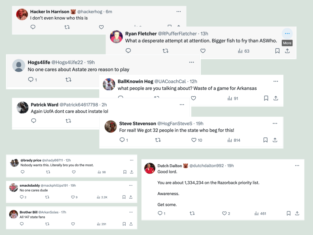 This isn’t the first time Coach Hodgson has challenged NEA to a duel. Just weeks into his tenure, Hodgson attended the Arkansas State football Spring Game and called out former head coach Eric Musselman. It is also noteworthy to mention that in 2021, upon the cancelation of a game with Texas A&M, the northwest university tried to plug the gap with an impromptu game against Arkansas State, of which then head coach Mike Balado said “nah.”