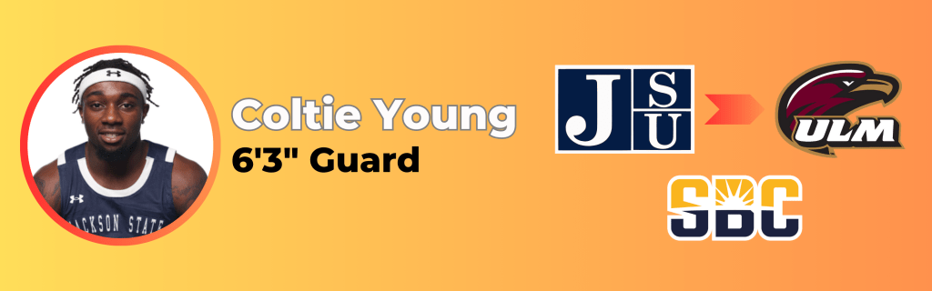 It will relieve many in the Sun Belt that the Warhawks no longer have the services of ancient forward Nika Metskhvarishvili, who is playing yet another year, but for Charlotte. ULM head coach Kieth Richard has yet to replace Metskhvariskvili’s inside presence, but he has imported some buckets from Jackson State in the form of 6’3″ guard Coltie Young.
