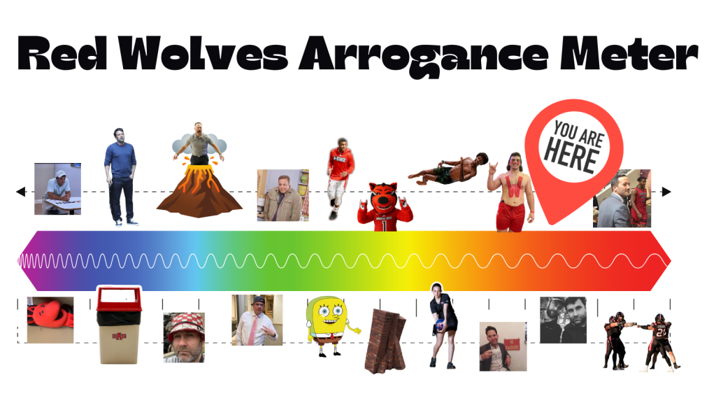 This culture of winning is rubbing off on everyone. On Saturday, head football coach Butch Jones delivered his second bowl eligible season by winning on the road over Georgia State. Head women’s basketball coach Destinee Rogers, despite losing her two best scorers to the transfer portal over the off season, has put up back-to-back 100-point wins. Suddenly, after years of allowing sub-mediocrity to poison Arkansas State Athletics, the Red Wolves Arrogance Meter is once again throbbing with smugness.