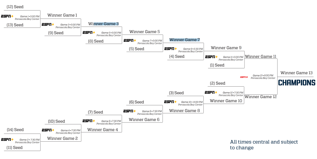 By the difference of a single point, the Sun Belt went from one team determining its destiny to four teams vying for two Super-Duper Tournament Byes – a uniquely Sun Belt qualification that places its top two programs in the tournament’s semifinals as the rest of the conference eliminate each other in Huger Games fashion.
